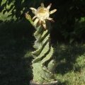 Description: The spiral cereus (Cereus forbesii cv. SpiralisSN|11160]] ), is a shrubby or treelike species dubiously thought of as a mutant Cereus forbesiiSN|7058]]SN|7058]]. It is a (usually) trunkless cactus that forms numerous tall, ascending, columnar stems which branch at the base in a candelabra-like arrangement. Stems have a waxy bloom on the surface and reach a height of 2-4 metres (but can grow up to 5 m high or more), and are 10 to 12 cm in diameter. They have five to nine widely-spaced ribs. A few branches from the original plant were imported in Europe around 1980 for a very hight price. The original clone was characterized by strong grey stems covered with a dense pruina coating and with short spines (Also known as "short spined clone"), but nowadays almost all the plant on the trade are seed grown specimens derived from cross pollination with (presumably) Cereus forbesii cv. SpiralisSN|11160]] or Cereus stenogonus, they are usually a darker blue-green colour usually with longer spines, and there remains a considerable confusion surrounding the true identity of this plants.