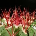 Central spines: Several, subulate-acicular, stright or slightly curved, more or less flattened and angular at first bright red/purplish becoming dull yellow with age, but some populations also boast yellow-spined individuals, and the white bristles are occasionally absent.