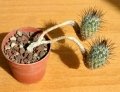is one of the most fascinating and unusual cacti. It has a tuberous root from which arises an extremely thin neck, ending in an enlarged top-shaped plant body, there is little chance of the thin neck support the stem vertically.