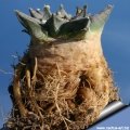 Stem: Grey, or blue-green, flattened, globose, rounded on top, 3-12 cm high, 10-25 cm in diameter.