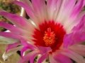 Thelocactus bicolor cv. inermis: Spineless cultivar with flamboyant jagged flowers.