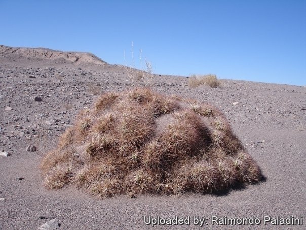A large clump partly covered by sand in the vicinity of San Pedro de Atacama, North Chile. This cactus never occurs on rocks, but rather on sandy grounds.