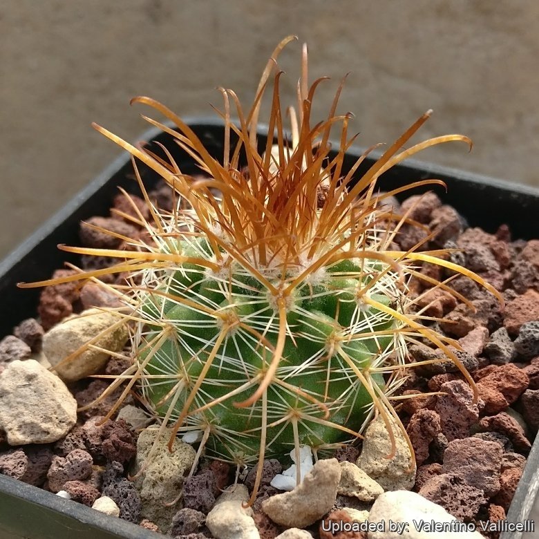 Description: Parodia aureicentraSN|5760]]SN|5760]] var. rauschii, best known in cultivation as Parodia rauschii, is a globular cactus, with green stem densely covered by stout, honey-yellow hooked central spines. The crown bears a mass of large red to orange red flowers in spring and, often, creamy-white wool. This species was discovered by Walter Rausch during his studies in 1962-1963. The plant was placed under the field number WR23. Rausch meant to have here to deal with a variety of Parodia aureicentraSN|5763]]SN|5760]], not wrongly by the way. It was then described in 1963 by Backeberg as Parodia rauschiiSN|5760]]SN|5763]]. In particular P. rauschii shows a strong resemblance to P. aureicentra var. omniaurea (FR 916c), a Parodia described by Ritter in 1962, which in appearance (habitus) and inflorescence is indistinguishable from P. rauschii. However the sites of origin of this two taxa are close to each other but not contiguous, and a genetic exchange seems to be excluded. But Weskamp is of the opinion that, given the differences in seed structure, there are indeed two "different" species. Compared to P. rauschii, Parodia aureicentraSN|5760]]SN|5760]] is smaller, has more marginal spines, and the the main central spine is shorter and straight (not hooked). The taxonomic value of most of this “species” and “varieties” is the subject of unfinished discussion.