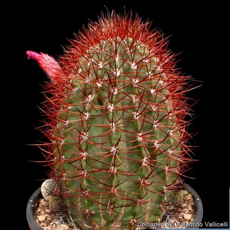 Description: Denmoza rhodacanthaSN|7993]]SN|7993]] is a large slowly growing columnar cactus. It stay globulous during a long period before becoming shortly column-shaped, 0.5 to 1.5(-2) cm high.