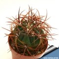 Radial spines: 8 to 10, brownish-red becoming grey, awl shaped and slightly curved, very different in young and old plants. There is also a form ("flavispina") with orange-yellow spines.
