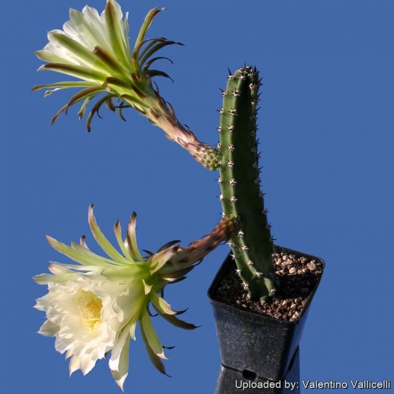 It is a nice columnar cactus that produces huge nocturnal white flowers from spring to autumn.