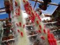 Description: Cleistocactus winteriSN|3784]]SN|3784]] subs. colademononis, sometimes listed under its old name of Hildewintera colademononisSN|9579]]SN|9579]], is a fantastic plant with very long white and soft, hairlike spines. The common name “monkey's tail” refers to the appearance of the hairy stems. It is free flowering and the outsize bright red blooms are particularly decorative.