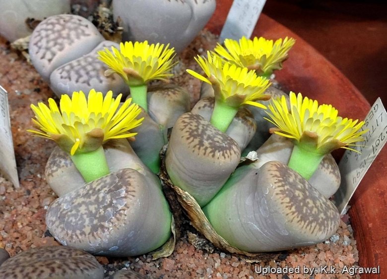 Cultivation and Propagation: The Lithops (a.k.a. Living Stones) are some of the world's most fascinating plants and are sought by the collector of succulent plants. Paying attention to the particular growing requirement of Lithops is especially important. If you provide the Lithops with the right conditions, they will reward you with their unique shape, size, colour and a proliferation of blooms in autumn. However, Lithops are tricky plants that are very particular about their growing conditions and require the right maintenance in order to keep happy. But don't be afraid even the best growers have plants that mysteriously dry up, or leave during the night. While Lithops are picky about their care, if you are patient and remember the basics, your efforts will be rewarded. Being small plants, a representative collection can be grown on a patio table, a sunny windowsill or a shelf in the greenhouse.