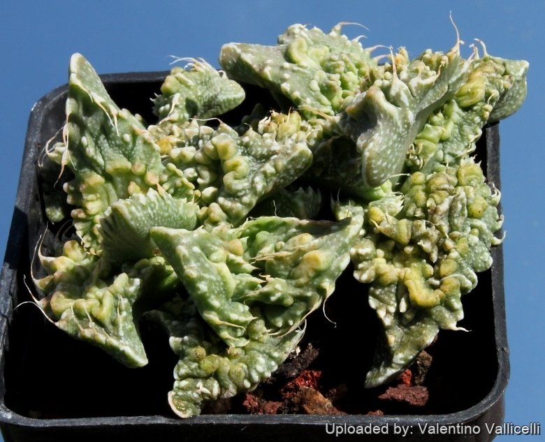 Remarks: The cultivars "SUPER WARTY" is a selected form with large bumped and tangled tubercles or warts looking like a strange green marine creature. The petals of its flowers are also contorted monstrous. They need full sun to open fully and often don't open at all if the weather is cloudy, or if they are in the shade.