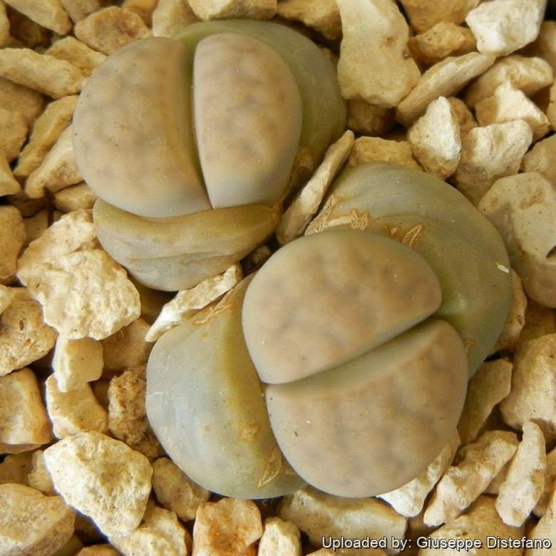 Cultivation and Propagation: It is a summer growing species with dry rest period over winter. Easy to grow it tolerates a degree more excess water than some particular hydrophobic species, even so it must have a very open mineral, fast draining mix with little compost and a high degree of grit, coarse sand, small lava gravel or pebbles. Give them the maximum amount of light you are able to give them, but care should be taken about exposing them to the full blast of the sun rays in summer. Such tiny plants can easily get scorched or broiled and their appearance spoiled (this may not matter in the wild, where the Lithops have probably shrunk into the ground and becomes covered with sands).