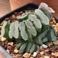 Habit: Stemless distichous plants, medium sized with windowed leaves on upper margin. Solitary or slowly clumping depending on the clone (Unpredictably, some plants remain unbranched, while others readily cluster)