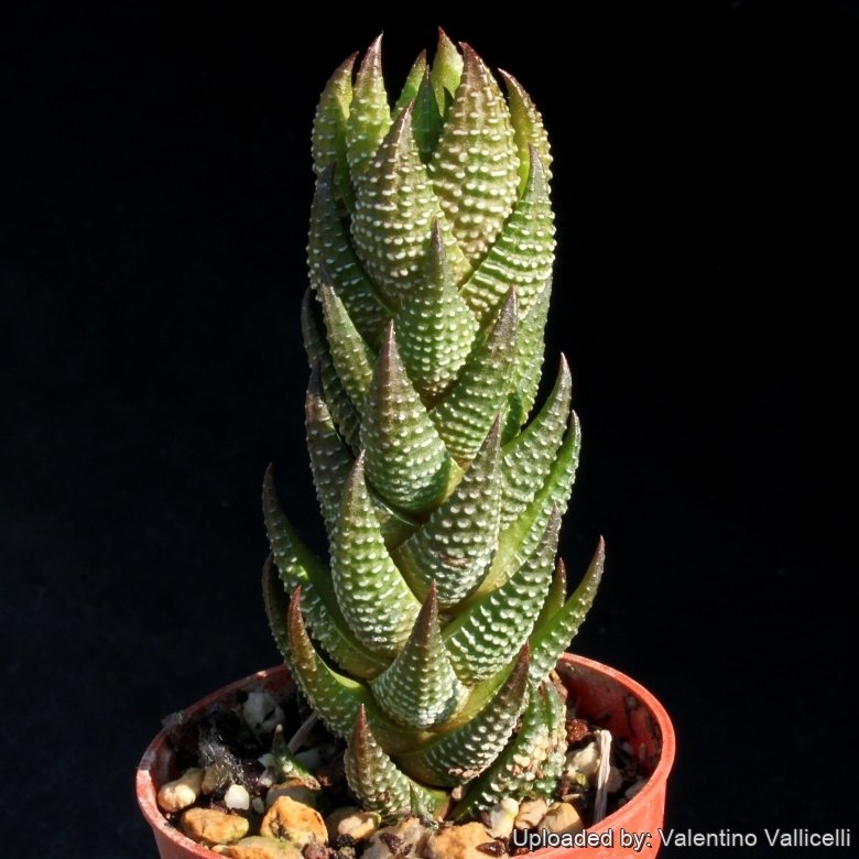 Description: Haworthia reinwardtiiSN|17124]]SN|17097]] is a popular succulent species which is particularly priced for its darkish-green columnar rosettes speckled with white wart-like protuberances on the leaves. It is one of the best marked of all haworthias. This species is highly polymorphous and has been split over time in nine to twenty subordinates taxa, all possessing slightly different characteristics, and although nowadays the tendency is to just consider them all as forms of Haworthia reinwardtiiSN|17097]]SN|17097]], but non-botanists prefer to have a name for all their plants if they distinct enough to warrant one.