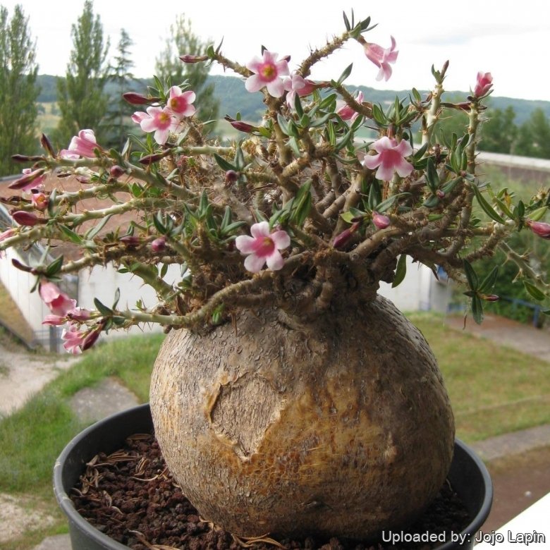 Echites bispinosus (Pachypodium bispinosum) Photo by: Valentino VallicelliCultivation and Propagation: They seem to be particularly prone to rot if allowed to get too wet in winter, or if cultivated under less than ideal conditions and care. Water sparingly in summer and give extra well-drained soil to avoid waterlogged conditions. No water from November to March. The watering program will change, depending on temperatures and stage of growth, but it is best not to let this plant dry out completely for any length of time. It is sensitive to cold, and should be kept totally dry in winter, at or around 4°C. Protect from frost. It tends to lose its leaves and go dormant in winter. It likes full sun to light shade .