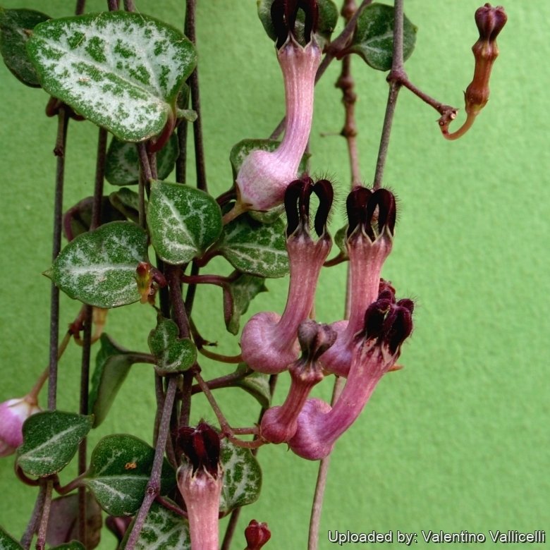 Ceropegia linearis subs. woodii Photo by: Giuseppe DistefanoCultivation and Propagation: Ceropegia linearisSN|22143]]SN|22143]] subs. woodii forms the most striking trailing stems if grown in a suspended basket. In a warm Mediterranean climate, it can be grown as a ground cover as well. During the growing period it requires heat, light and adequate watering. However the flowers are most interesting and worth the trouble, only bearing in mind that this species benefits from slightly warmer winter than others.