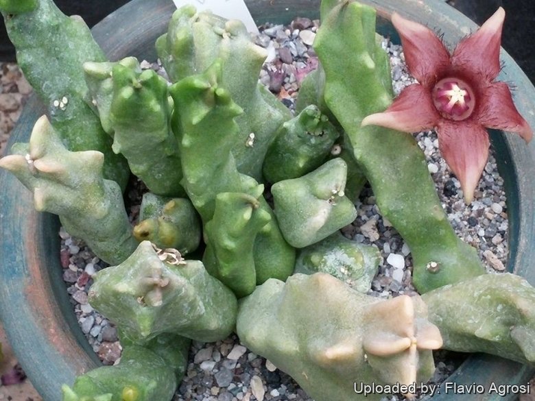 Caralluma dioscoridis (Duvaliandra dioscoridis) Photo by: Raffa C. GarciaCultivation and Propagation: Duvaliandra dioscoridisSN|29240]]SN|29240]] is a particularly difficult plant to keep because of its very specific growing needs with much light and relatively high (above 15°C) winter temperatures. It’s very susceptible to rot in combination with low temperatures, but given the right growing conditions it is an easy blooming plant. The goal with this plant is to grow it as fast as possible in the heat and full sun of summer (lots of water!) and hope for flowers the first or second season and then try to keep it alive during winter with lighter, but regular watering. Pieces of stems may be used to start new plants, so it is worth a try!