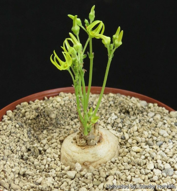 Tuber (caudex): Turnip-shaped, slightly depressed, 40-100 mm in diameter, mostly underground.