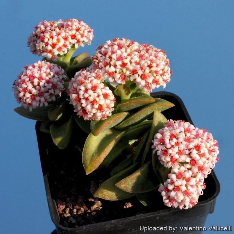 Lovely clusters of starry, light pink flowers appear in winter and contrast nicely with the small, dense, mounded silver foliage, it is very showy and one of the best Crassulas for pink flowers, a beauty!!!