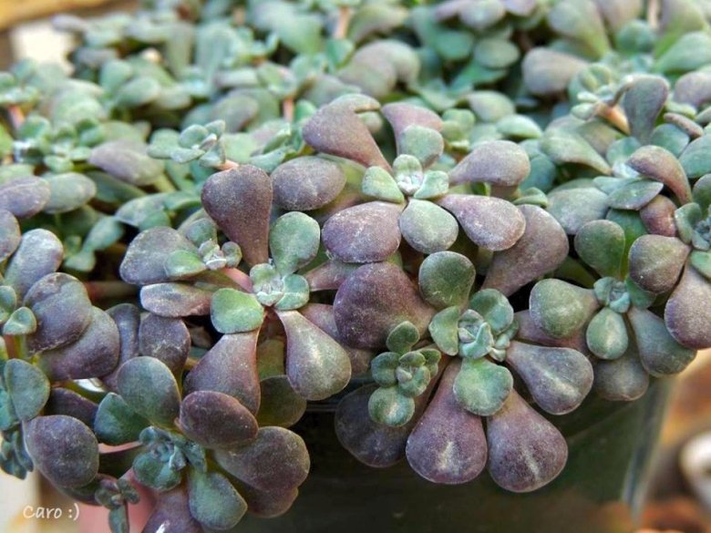 - Sedum spathulifolium subs. pruinosum cv. William Pascoe: has purple red leaves, pruinosity reduced.