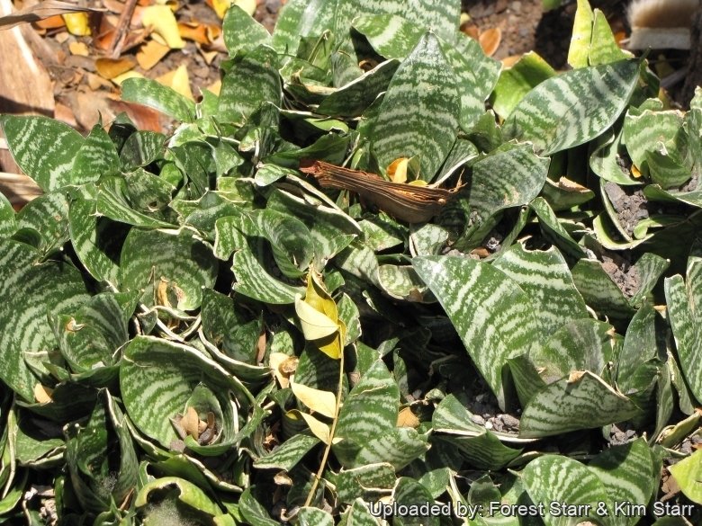 Read More... Cultivation and Propagation: Easy to cultivate, Sansevieria trifasciataSN|19026]]SN|19026]] cv. Hahnii, is a groundcover that grows pretty fast and spreads unlike the tall common Snake Plant (Sansevieria trifasciataSN|19026]]SN|19026]]), it's parent, which can grow up to 60-90 cm tall. It needs the same care as the standard Snake Plant, just make sure you take care in winter to keep rather dry or you can get root rot. It is a very drought tolerant plant, but not as cold hardy as some. It needs heat and dry air in Winter and half shade in Summer. Even this version is prone to suddenly rotting especially if exposed to excessive water, cold or a combination of the two. This plant is invasive in subtropical areas from zone 9a southward! It grows rapidly outside in full sun, reproduces rapidly and spreads everywhere. This is a good houseplant like most or all Sansevierias.