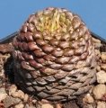 Stem: It has a brown, spherical barrel-shaped or columnar caudex usually unbranched or occasionally few branched, that look like a pine-cone or a woody trunk. The stem which does not photosynthesise is a reserve for water, and usually does not grow much higher than around 20 cm and 7,5 cm thick. The trunk has a geometrically-neat tubercled surface, the tubercles (tuberculiform corky scars occasioned by falling away of the old leaves) are prominent dark reddish-brown up to 3 mm hight and crowded in many spiral series imbilicated in the centre giving a reticulate appearance to the surface.