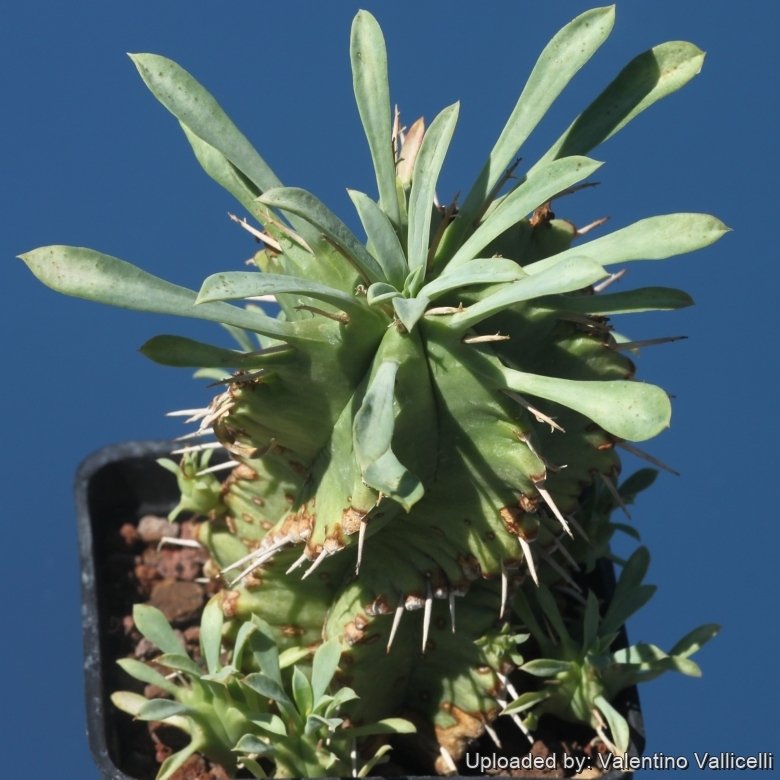 Remarks: Euphorbia pulvinataSN|18705]]SN|18705]] has a large area of distribution, and is a very variable species. The plants from the northern distribution area differ clearly from those of the south: one forming dense cushions of up to 30 cm in height, the other with few stems, up to 1 m high (The small one is the most common in cultivation). The difference between populations is the frequency of the appearance in which these forms occur. So it can happen that two individuals of two different populations can look very similar and also, two plants of the same population can look very different. However when you are looking at the whole population, you can see the difference of one population from another.