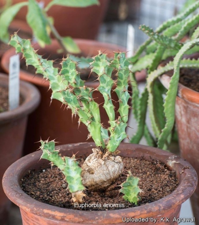 Cultivation and Propagation: Euphorbia enormisSN|21556]]SN|28048]] is cultivated as an ornamental, and is a particular favourite of succulent plant enthusiasts. Cultivation of this plant is the same as that for the other tuberous varieties of Euphorbia, (e.g. Euphorbia stellataSN|17359]]SN|17359]], Euphorbia deciduaSN|28048]]SN|21556]] etc.)