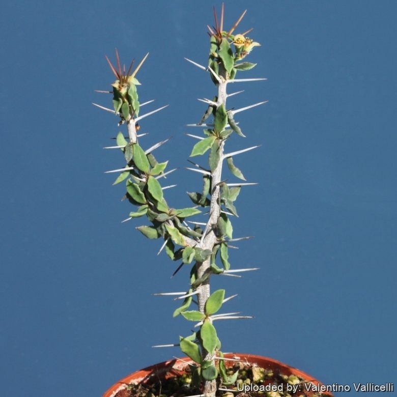 Euphorbia beharensis var. guillemetii (Ursch & Leandri) Rauh: Has spines 3-8 mm long; leaves up to 12 mm long and 4 mm wide. Distribution: SW Madagascar (Ranomainty).