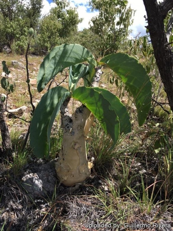 Habitat: It grows in rocky, arid areas covered by open, semi-tropical, fly-infested forest exposed to very dry and hot conditions. It seems to prefer dolomite. When conditions are especially severe, Cyphostemma sheds all its leaves, as these are large and permit water to evaporate. The plant’s acrid taste and poisonous qualities help keep hungry animals away. Population size is suspected to be declining due to collecting.