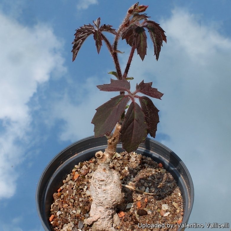Waterings: It should be watered plentifully in Summer and kept drier in Winter. This species like all pachycaul succulent species of Cyphostemma, is sensitive to excess moisture, and should be kept on the dry side. It rot easily and do NOT like a lot of water when it has no leaves.