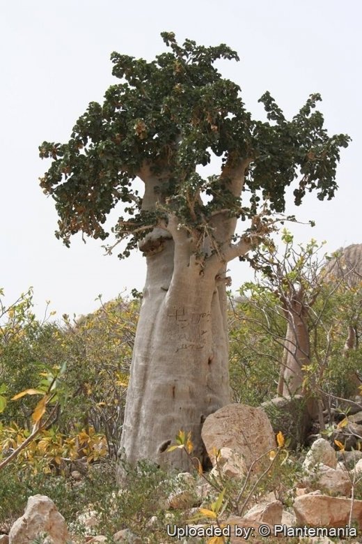 Dendrosicyos socotrana from seed (9 years old) planted in a rock. Trunks are succulent, but not bottle-shaped when young. Photo by: © Plantemania
